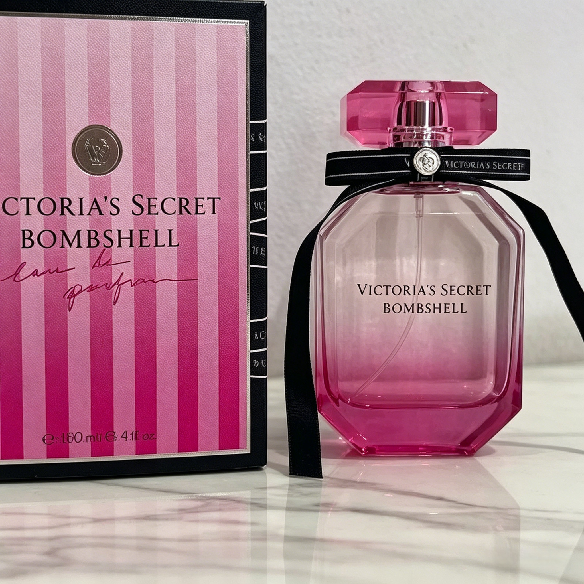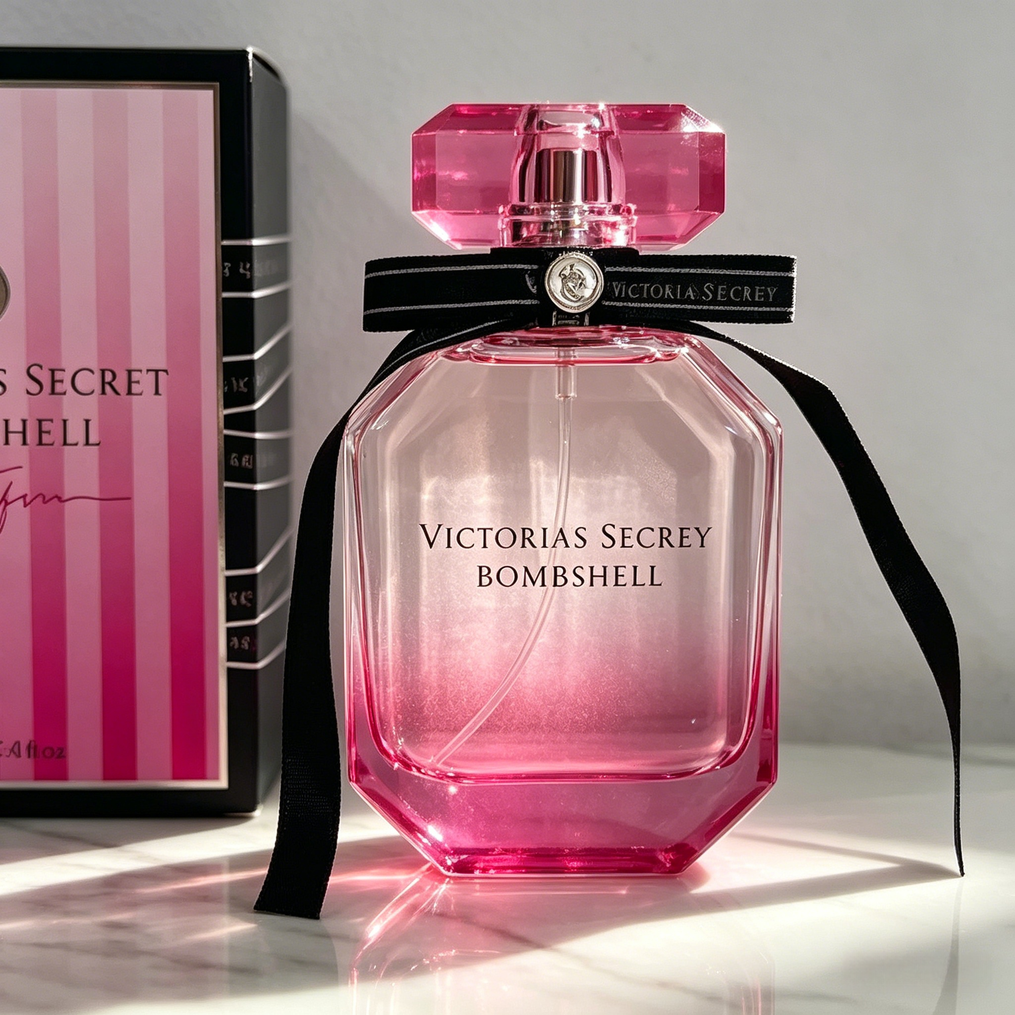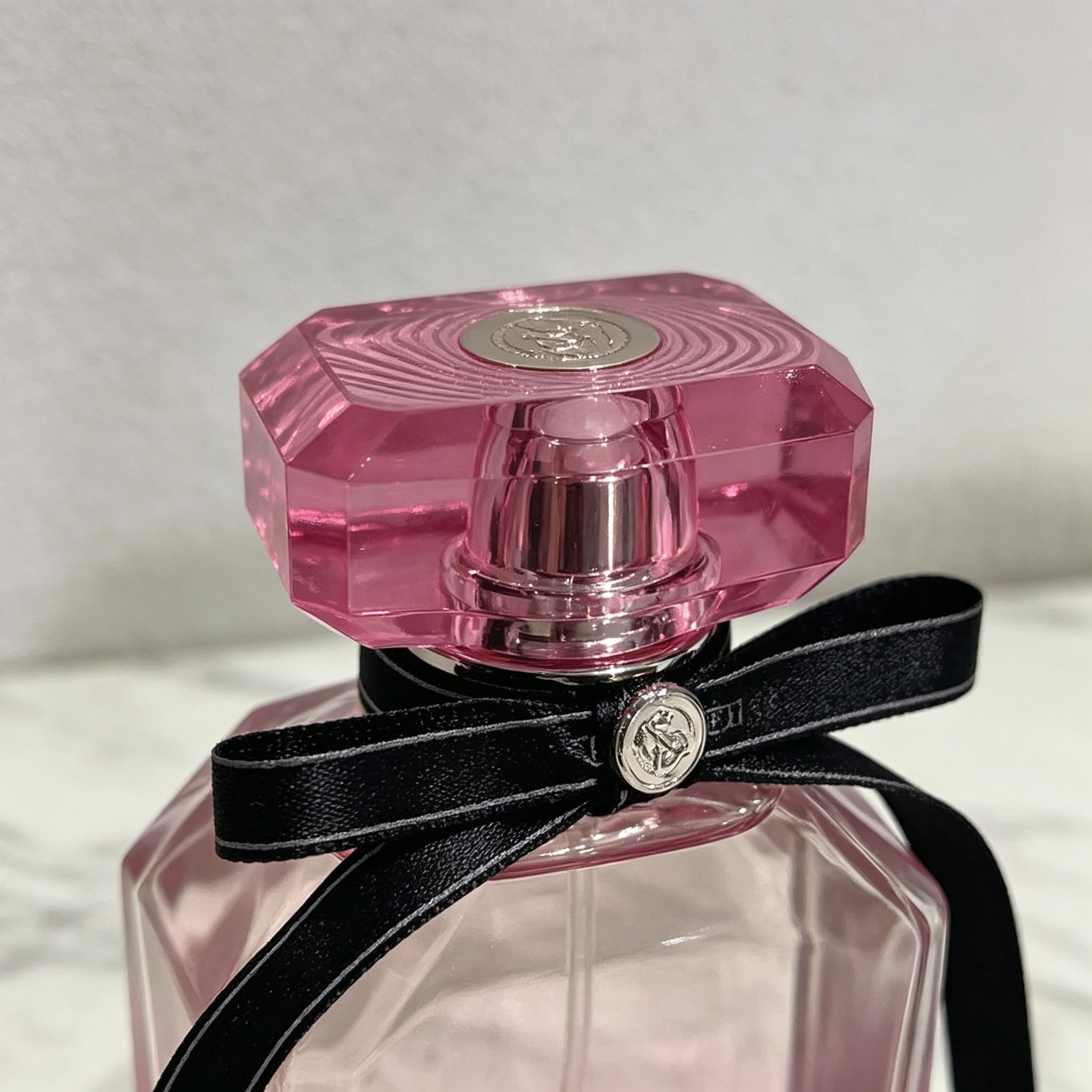 The gradient pink faceted bottle looks just like a glistening pink crystal, complete with Victoria's Secret's signature black ribbon. It’s such a vibe on your vanity!